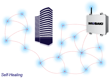 Through a capability we call "dynamic routing," MOSAIC routes data around obstructions, like hills or a dense cluster of buildings that present real problems for traditional "star" network designs.